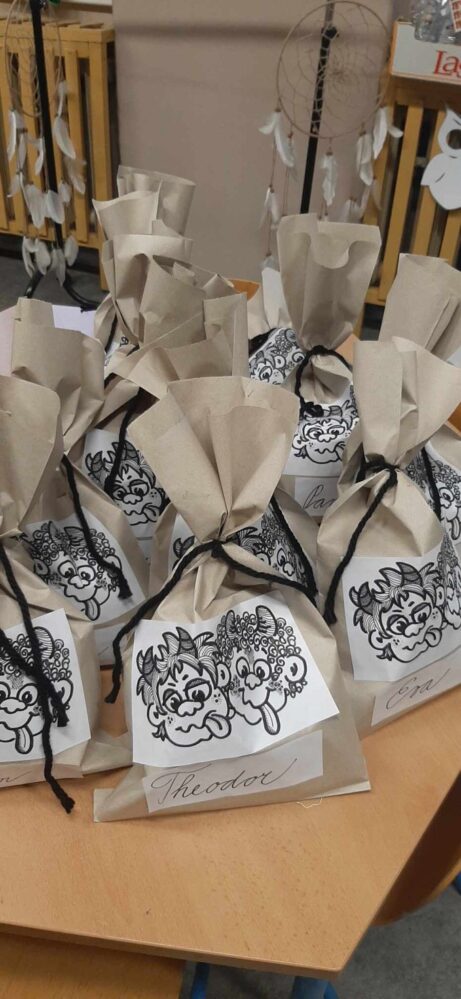 Na Hamrech se paní vychovatelka Bára a Zuzka domluvily s třídními učitelkami a mohly si užít návštěvu čertíků přímo ve třídách. Připravené balíčky s uhlím, kniha hříchů a trochu toho srandovního představení jsme si užili...