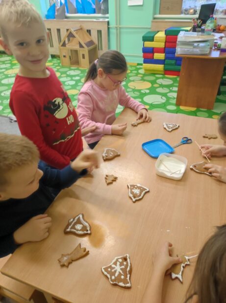 Chtěla bych poděkovat rodičům a prarodičům za úžasnou spolupráci. Díky jedné z babiček, která nám napekla perníčky, si děti mohly vyzkoušet jejich zdobení. Perníčky nám provoněly školní družinu u Dráčků a navodily krásnou vánoční atmosféru....