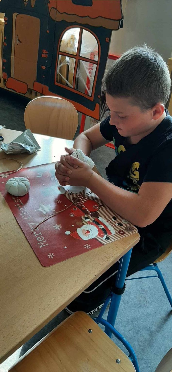 Starší žáci ve školní družině vyráběli malé dýně, které si odnesou jako dekorace domů. Úkol to byl nelehký. Hmota se musela dobře zpracovat, a ještě nás čeká po jejím vyschnutí zdobení. Jelikož ale prstíčky procvičujeme pravidelně, vše jsme zvládli na jedničku.