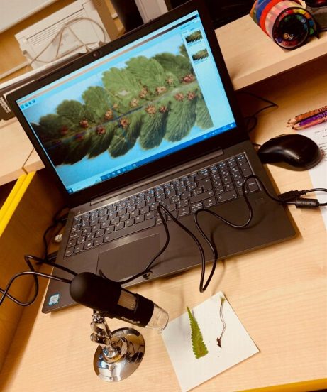 V hodině přírodopisu na téma „Mechorosty a Kapraďorosty“ si žáci vyzkoušeli nové školní mikroskopy propojené s notebookem. Zkoumaný vzorek viděli zvětšený na monitoru, mohli si jej přiblížit, zaostřit a také vyfotit. Žáci pozorovali rostlinky mechu...
