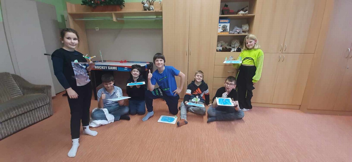 Jsme uprostřed zimních měsíců, a tak jsme zpracovali téma zimních sportů, konkrétně bruslení. V oddělení Soviček jsou děti velmi šikovné. Nejen, že vytvořily ledovou plochu a bruslící postavu, ale také tuto postavičku rozpohybovaly pomocí magnetu. Každá z postaviček se rozjela po „ledu“ a některé dokonce zvládly i piruety. S nadšením jsem sledovala, jak kluci vymýšlí techniku k tomu, aby se postava dala do pohybu. Musím konstatovat, že to byla opět jedna z rozvíjejících aktivit přenesená do výtvarné výchovy.
