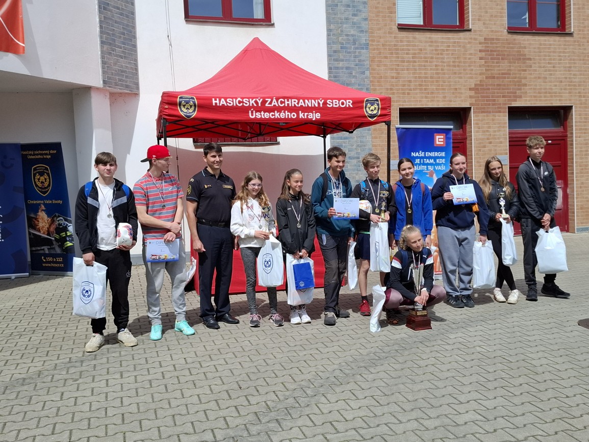 Dne 6.5.2025 se 4 vybraní žáci druhého stupně zúčastnili soutěže Mladý záchranář. Akce proběhla v areálu centrální hasičské stanice Teplice. Žáci prošli celkem 13. stanovišti, kde museli splnit úkoly z různých oblastí, které prověřily jejich znalosti, dovednosti a fyzickou zdatnost např. test dopravních znalostí, vázání uzlů dle předlohy, práce s buzolou, průlez polygonem, kde jsme přišli o pár bodů díky překročení časového limitu. Naopak se nám velmi dařilo v poskytování první pomoci a při resuscitaci.