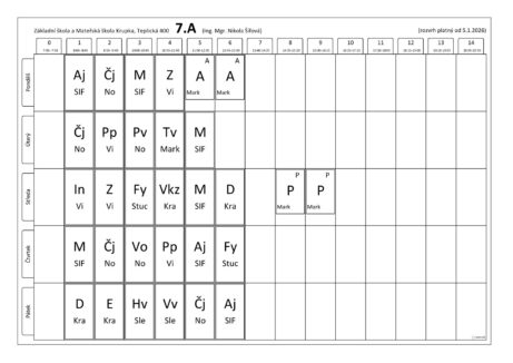 Rozvrhy tříd
