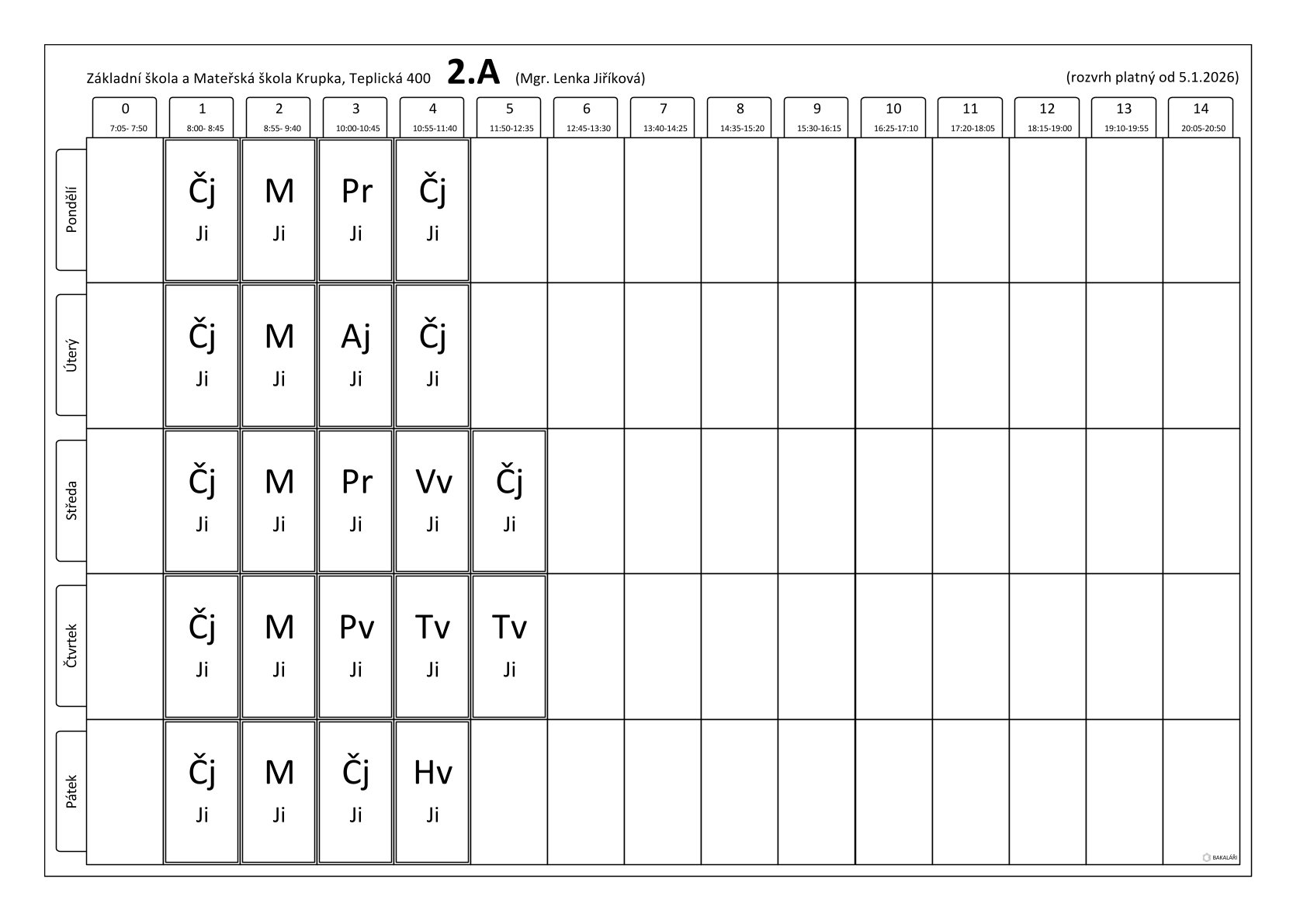 Rozvrhy tříd