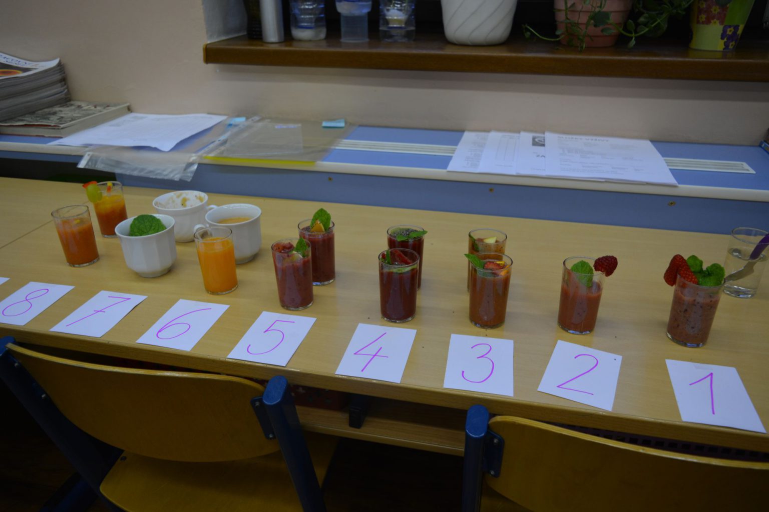 Největší zábavu přinesla všem výroba smoothie. Z čerstvého ovoce a zeleniny, bylinek a ořechů všechny skupiny vyrobily hustý chutný nápoj s vlastní invencí. Porota měla opravdu velmi těžký úkol, přiřadit body bylo téměř nad její síly. I když podle bodového hodnocení byla vyhlášena první tři místa, v našich očích vyhráli všichni. Při ochutnávkách jsme se olizovali až za ušima. Podle společenských mravů jsme si ťukli na zdraví! Myslíte, že se nad budoucím jídelníčkem aspoň zamyslí?